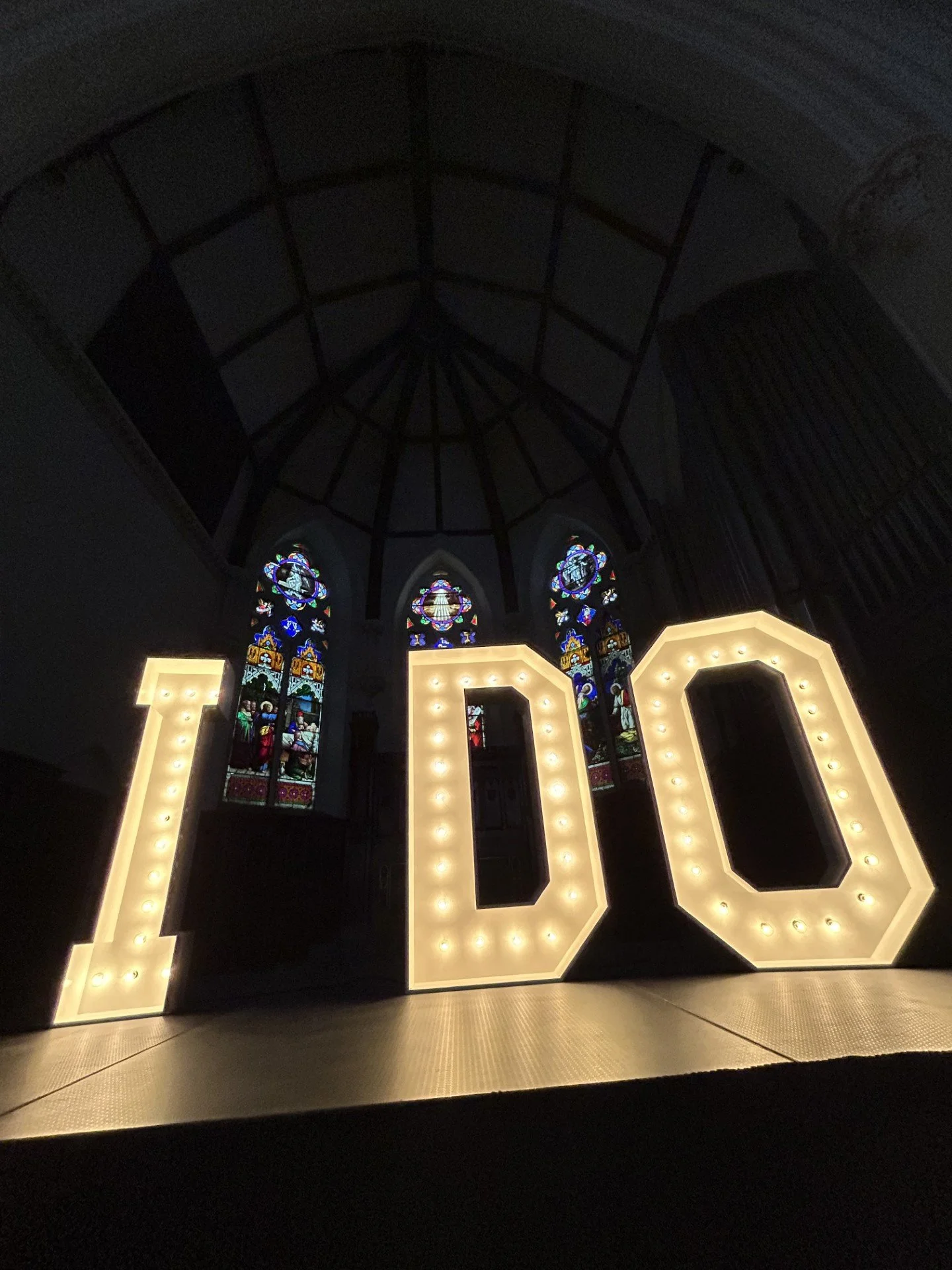 Light up wooden marquee letters. Approximately 5 feet tall.